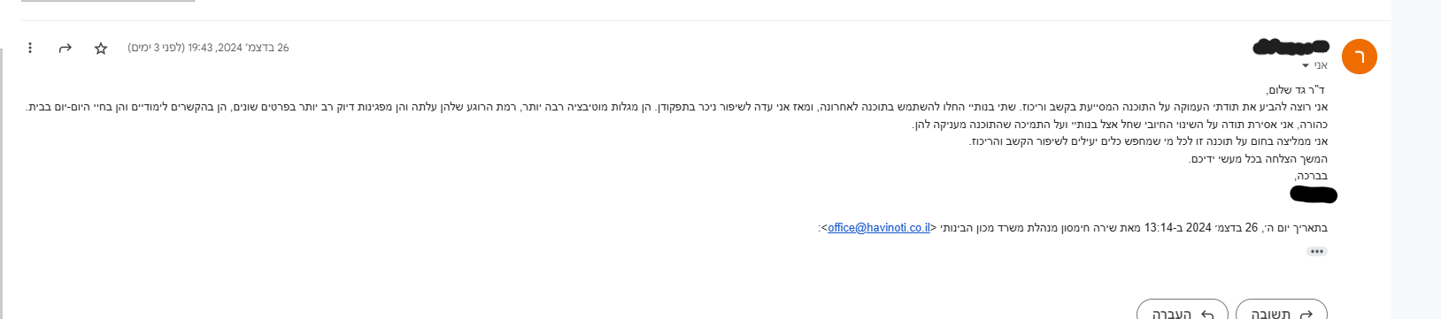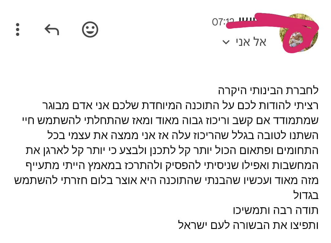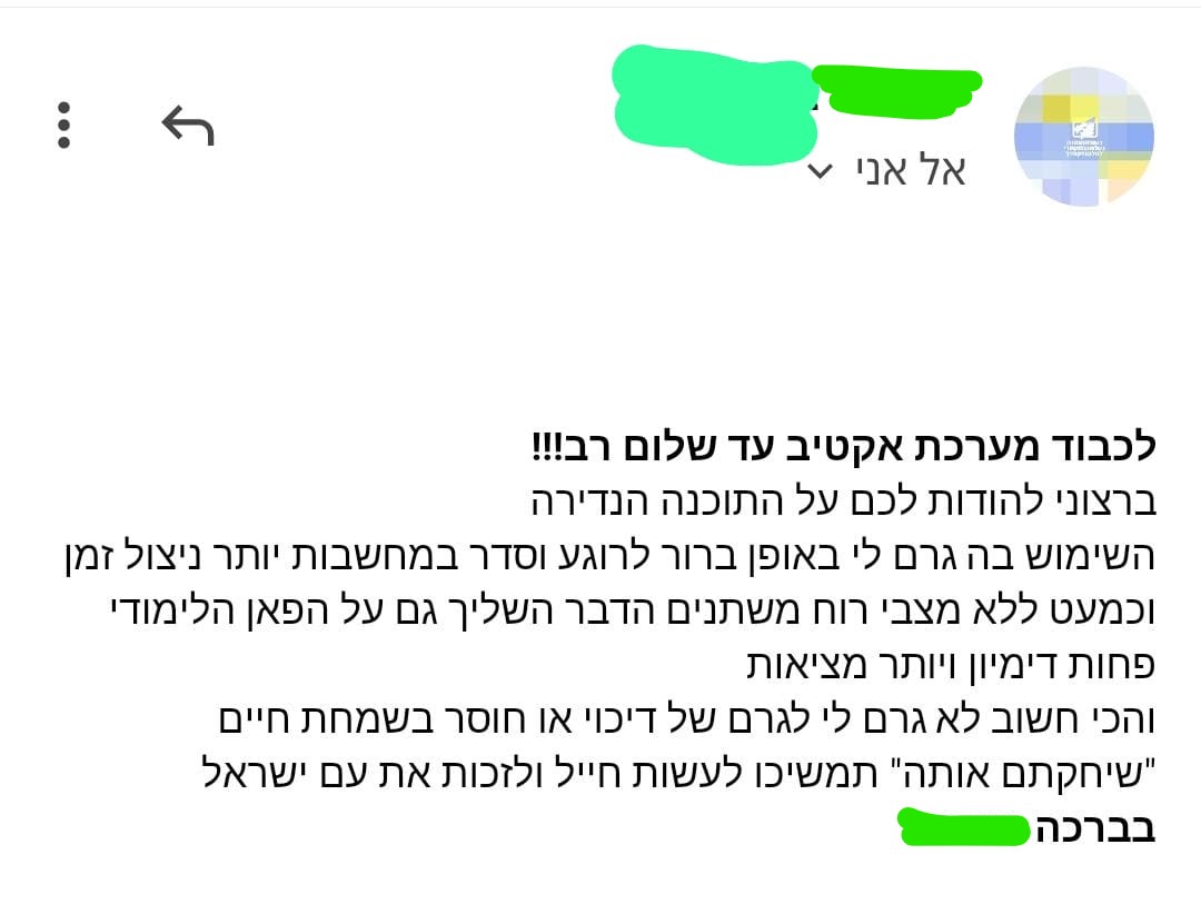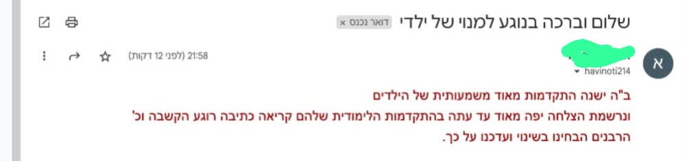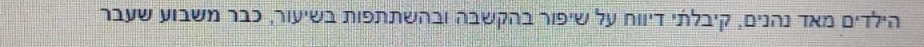 "ממליצה לכל אנשי החינוך ולהורים שרוצים להיטיב עם הילדים שלהם, לעשות את זה"